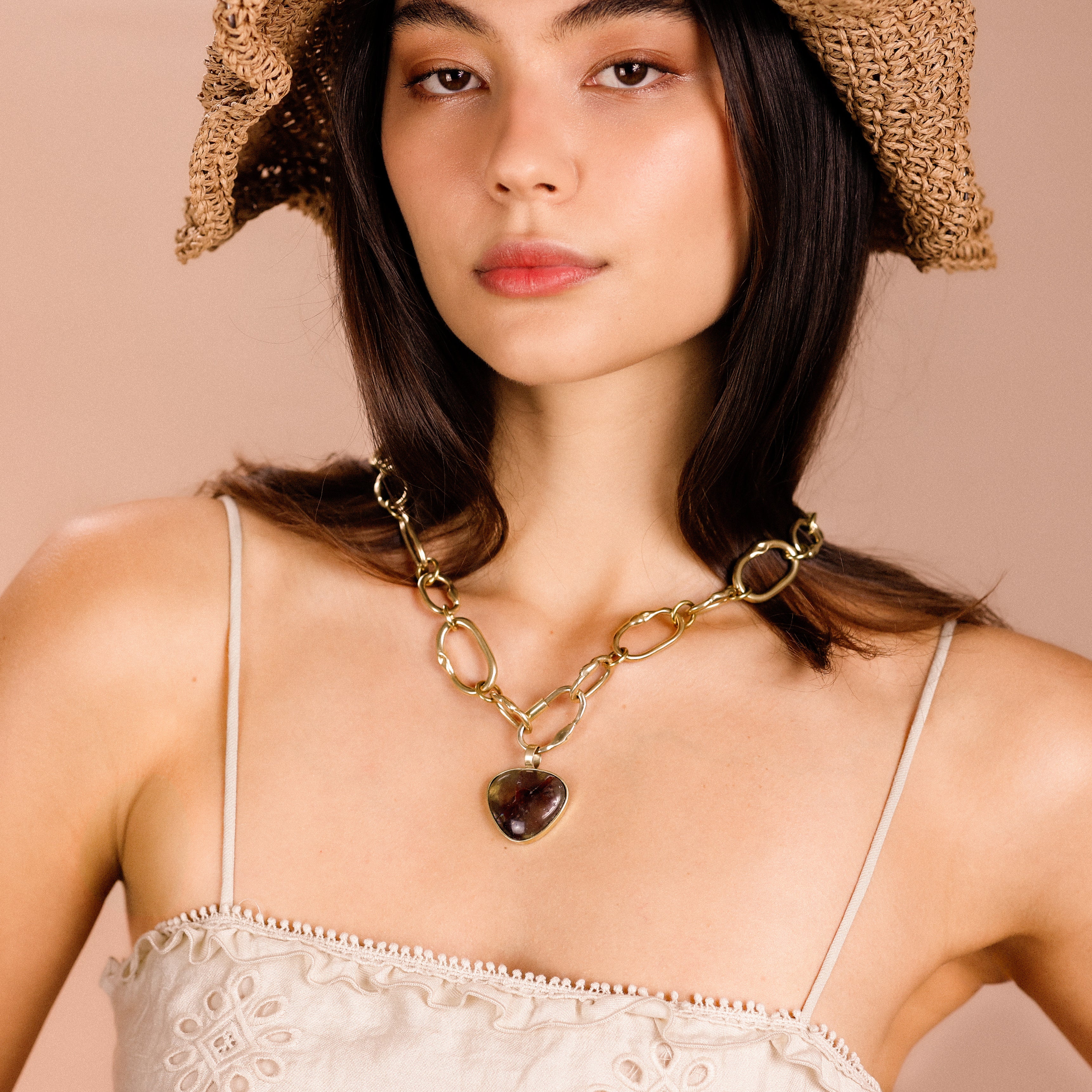 O contraste entre os metais é um componente fundamental da nossa linguagem estética. As pedras brutas nacionais são escolhidas através de uma curadoria minuciosa e consciente, sendo o principal ponto de convergência entre a técnica de ourivesaria artesanal e a força intuitiva da natureza.