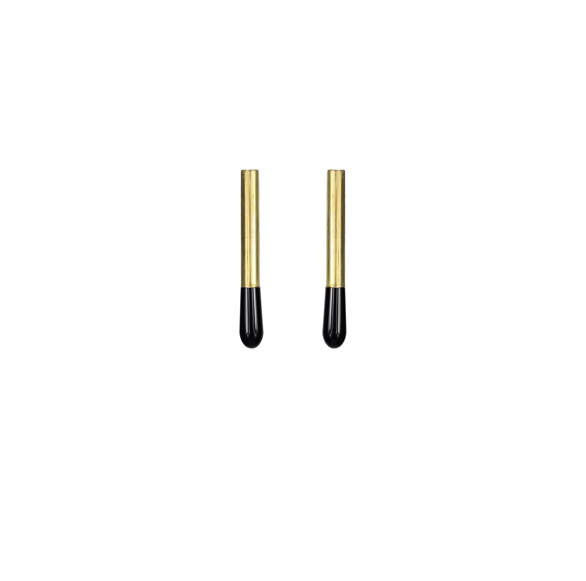 Brinco de latão com ponta de Ágata, feito de latão com acabamento polido, parte traseira, tarraxa e pino em prata. Produto sem banho e sem verniz.