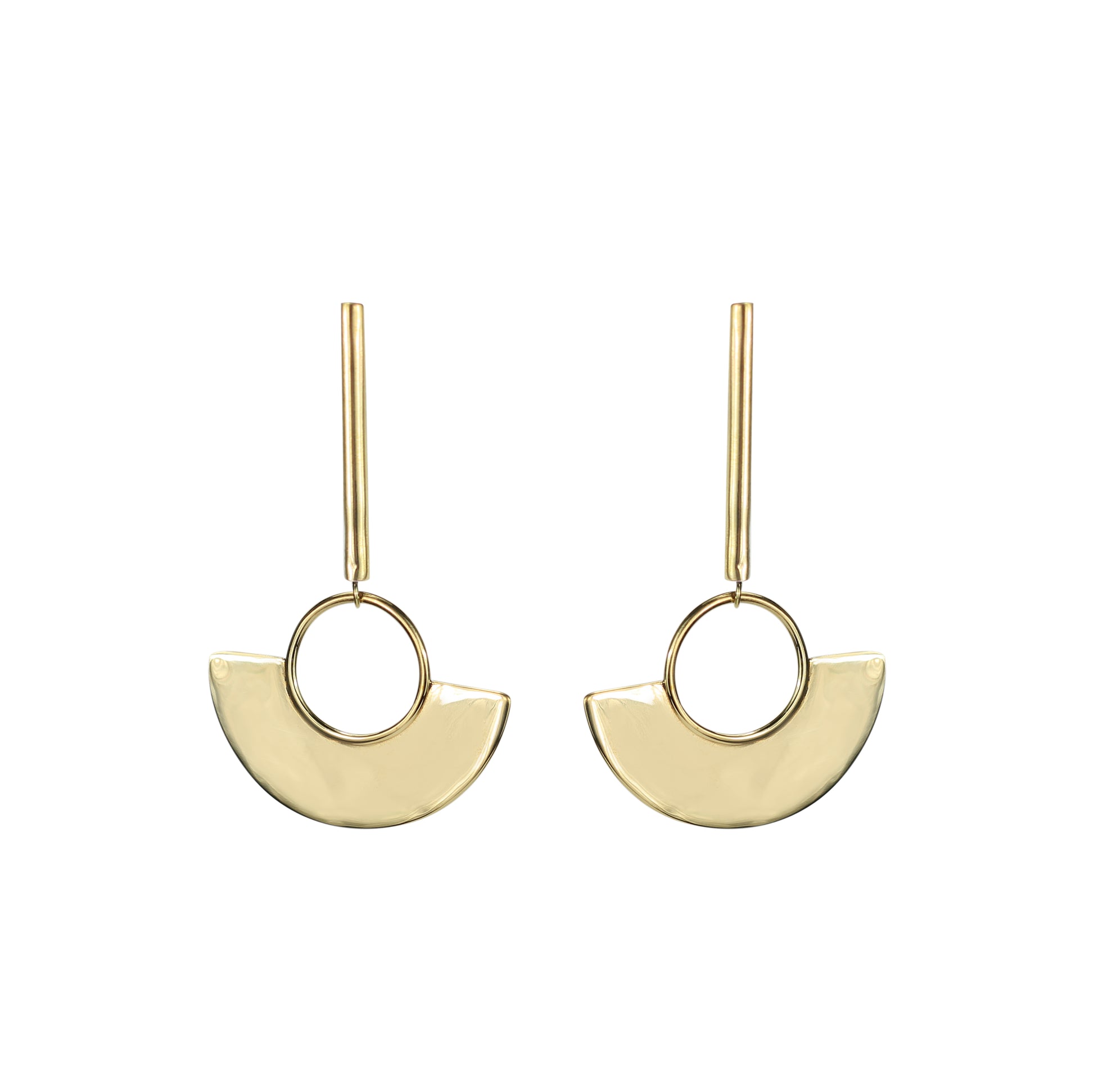 Brinco de latão articulado com acabamento polido, parte traseira, tarraxa e pino em prata. Produto sem banho e sem verniz.