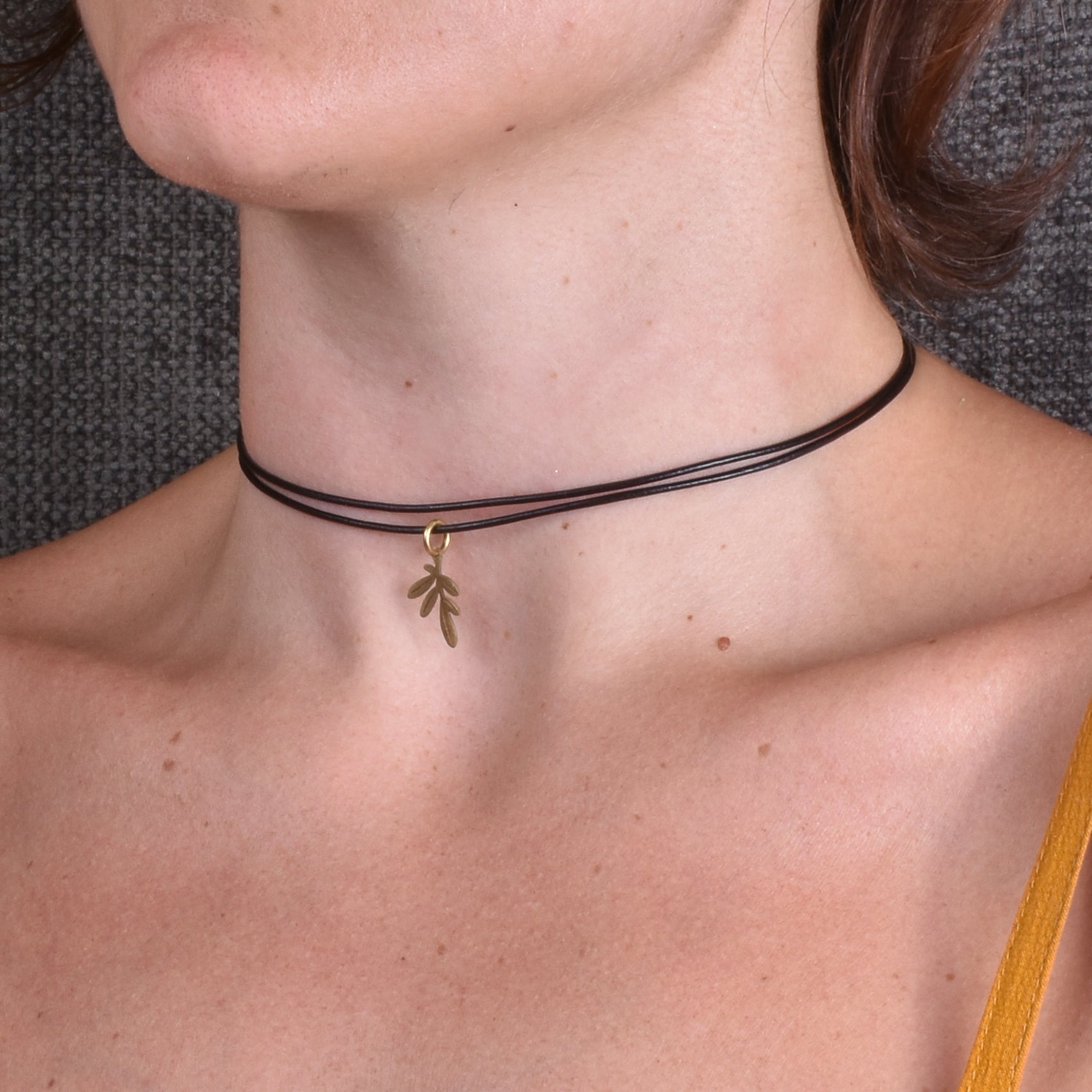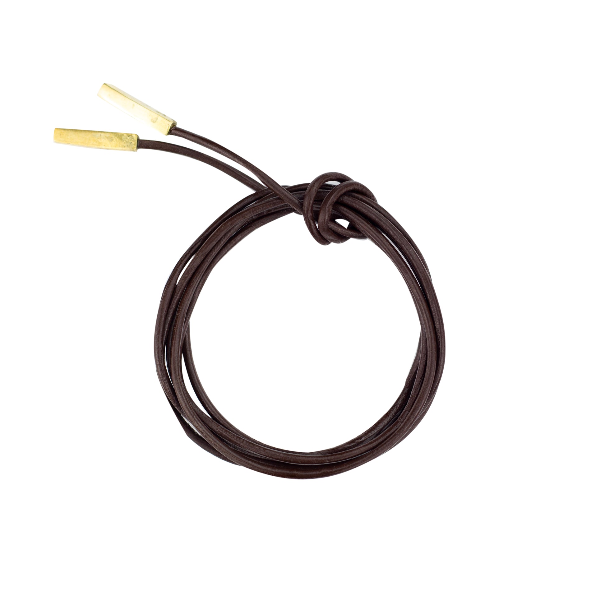 Couro grego natural de 1.5 mm com ponteira de latão bruto polido. A medida do cordão é de 1 metro.
