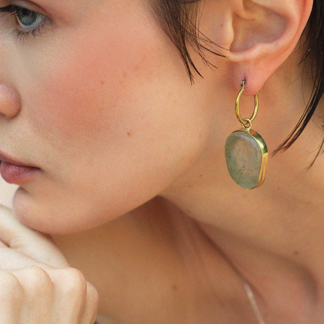 Pingente para argola de latão e Quartzo Rutilado, com acabamento polido.