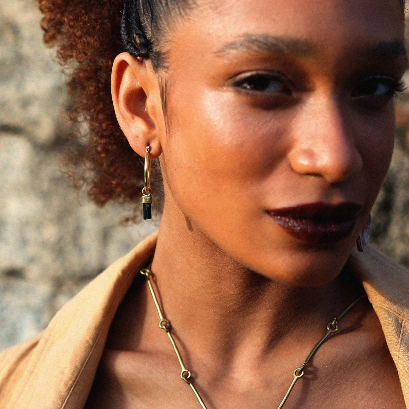 Pingente para argola com Turmalina Indicolita feito em latão com acabamento polido. Peça sem banho e sem verniz