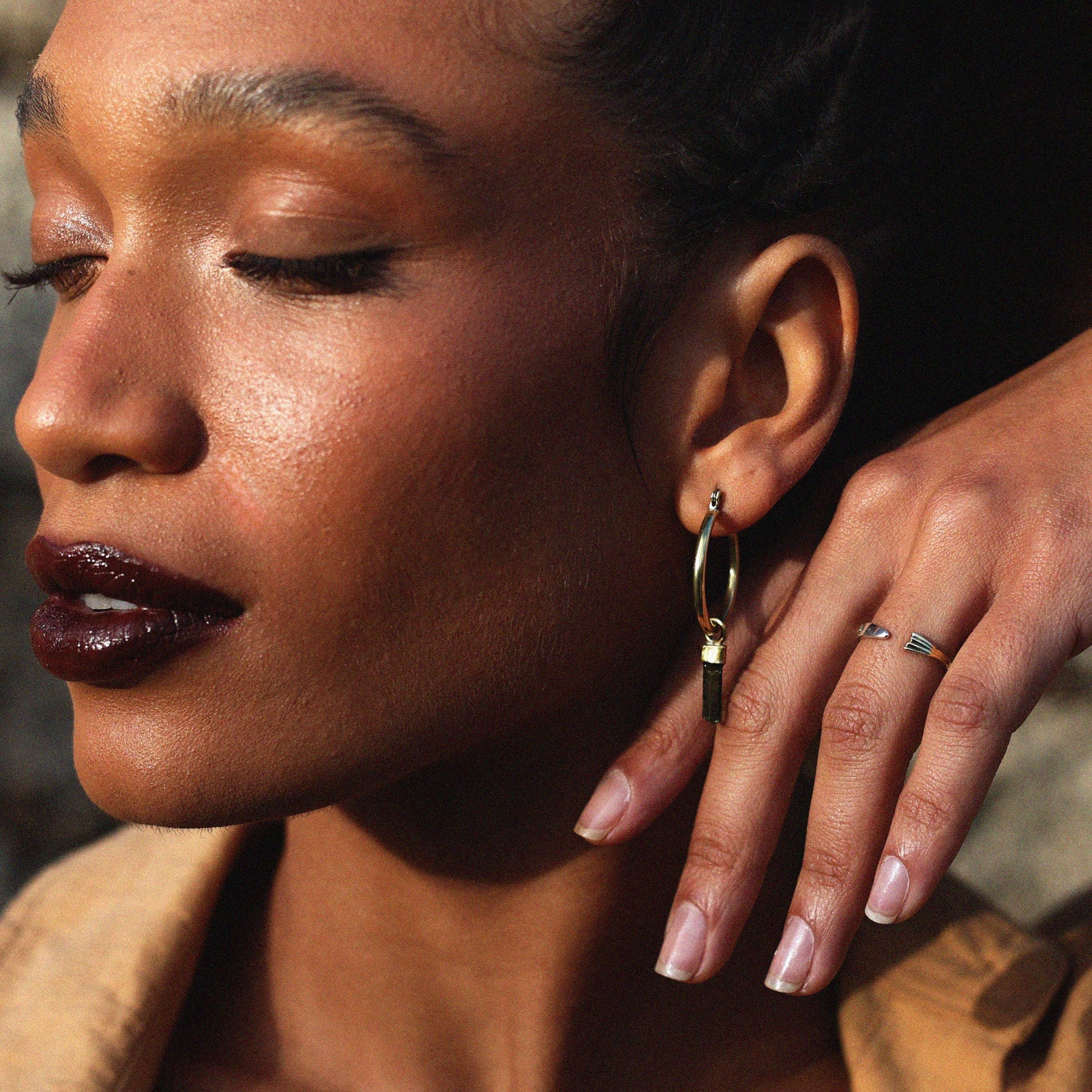 Pingente para argola com Turmalina Verde feito em latão com acabamento polido. Peça sem banho e sem verniz