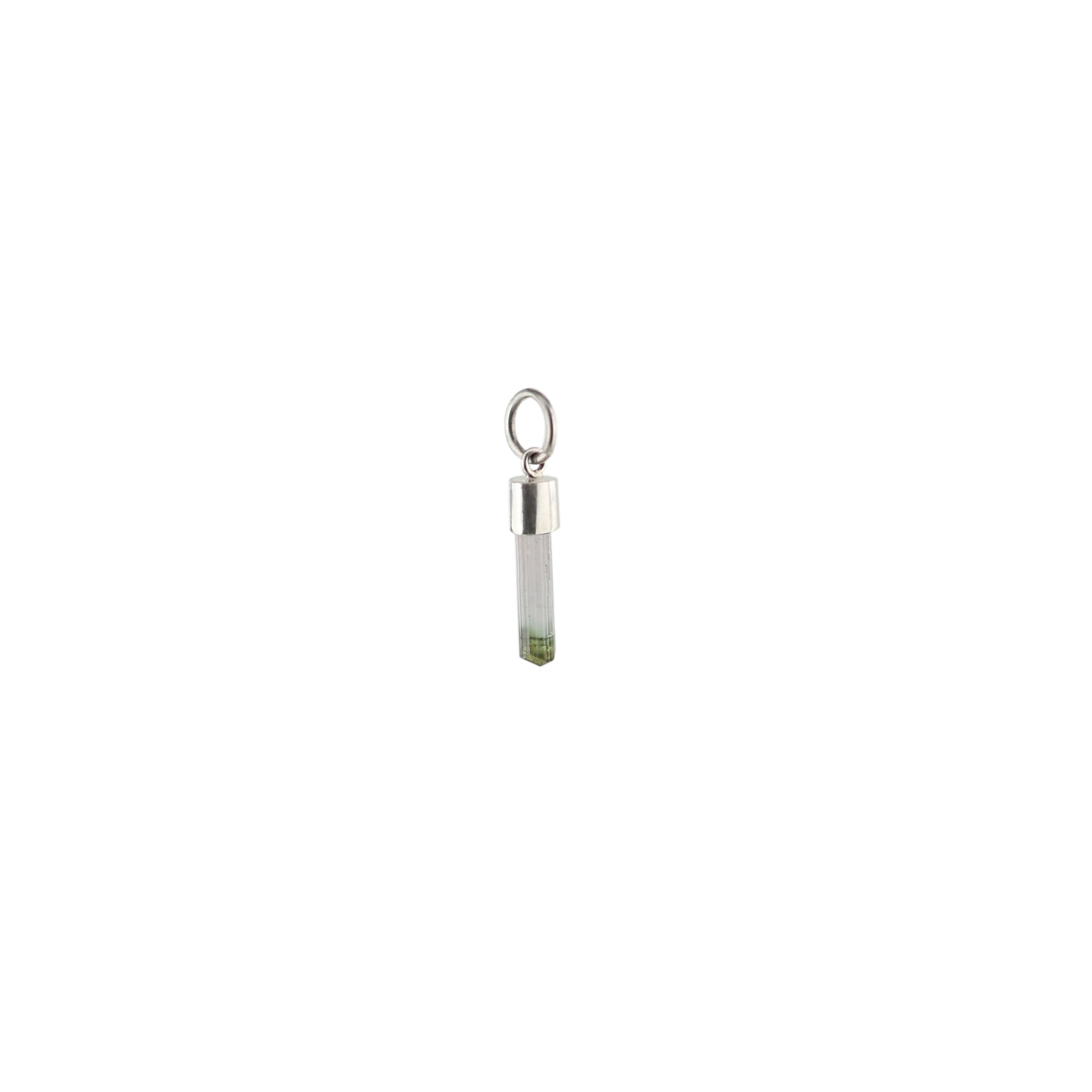 Pingente único em prata com turmalina verde. Acabamento Polido, sem banho e sem verniz.